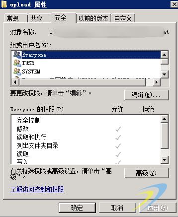 于是查看上傳目錄,目錄的權(quán)限已經(jīng)包含"Everyone",目錄應(yīng)該也沒有問題(之前上傳的圖片都可以訪問)