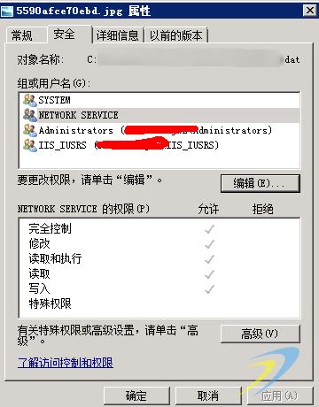 看到這我就想不明白了,既然目錄的權(quán)限有"Everyone"項(xiàng)那么上傳的圖片的權(quán)限也應(yīng)該繼承父類的權(quán)限才對(duì),所以好長(zhǎng)時(shí)間也沒有想明白這其中的原因