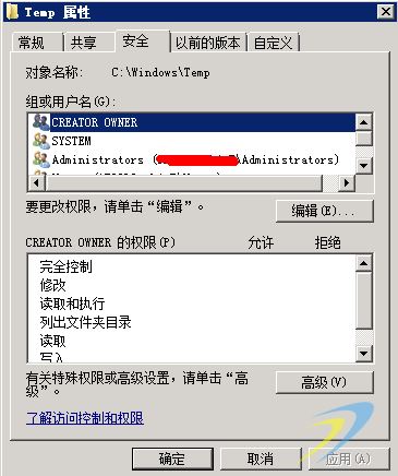 - 將"C:\Windows\Temp"目錄添加相應(yīng)的權(quán)限