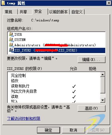這樣就存在一個(gè)問題,即Temp目錄下默認(rèn)的權(quán)限是沒有相應(yīng)的IIS訪問權(quán)限的(windows默認(rèn)配置),當(dāng)文件上傳到該目錄時(shí)那么上傳的文件默認(rèn)是繼承了Temp目錄的權(quán)限